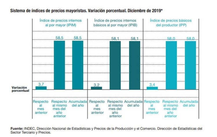 La inflación mayorista fue de 3,7% en diciembre y acumuló en 2019 un alza de 58,5 por ciento
