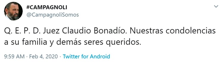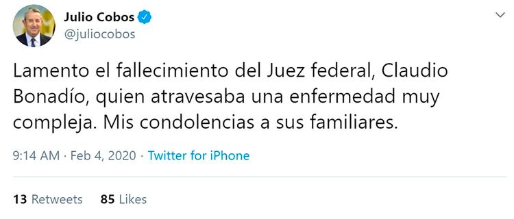 Aunque se sabía que estaba gravemente enfermo, las expresiones de pesar por la sorpresiva partida del juez, se fueron sumando en el transcurso de la mañana, sin ocultar la preocupación por el futuro de las causas contra la corrupción.