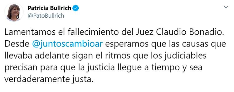 La mesa nacional de Juntos por el Cambio emitió un comunicado: “Esperamos que las causas que él llevaba adelante sigan el ritmo que los judiciables precisan para que la justicia llegue a tiempo y sea verdaderamente justicia”.