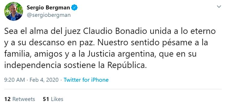 También quisieron expresarse a través de las redes el ex ministro de Ambiente, Sergio Bergman, el ex fiscal Juan José Campagnoli, los diputados José Cano y Alberto Asseff, el senador Alfredo De Angeli, el intendente de San Isidro, Gustavo Posse y el intendente de Vicente López, Jorge Macri.