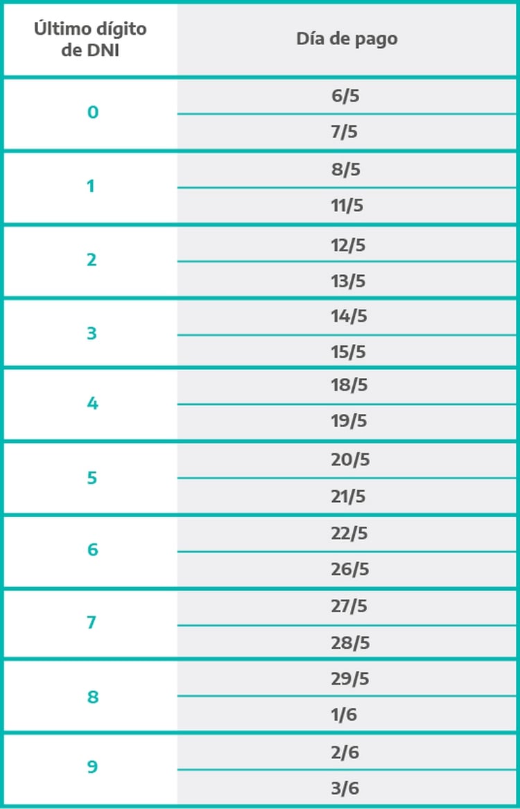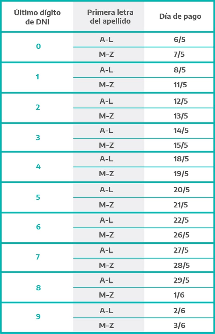 Los beneficiarios que eligieron su medio de cobro entre el 16 y el 20 de abril estarán cobrando entre este miércoles y el 3 de junio, según la modalidad elegida y de acuerdo al último número de DNI.