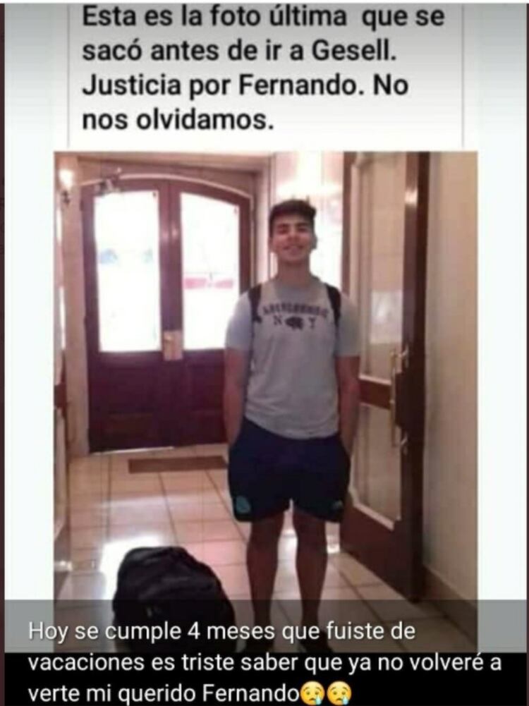 “Hoy se cumplen cuatro meses de que te fuiste de vacaciones, es triste saber que no volveré a verte mi querido Fernando”, fue el texto que escribió Silvino y que acompañó la imagen del joven.